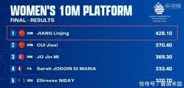 惊喜夺冠!2026年跳水世界杯蒙特利尔站,女子10米台决赛。