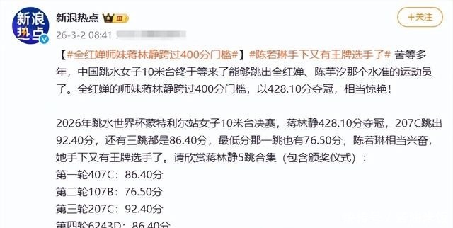 而蒋林静却将其跳出教科书级别,水花几乎消失不见,让全场惊叹。